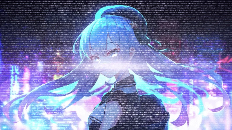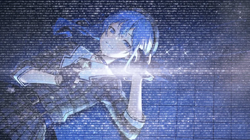 embodies a cosmic theme with her signature blue hair and